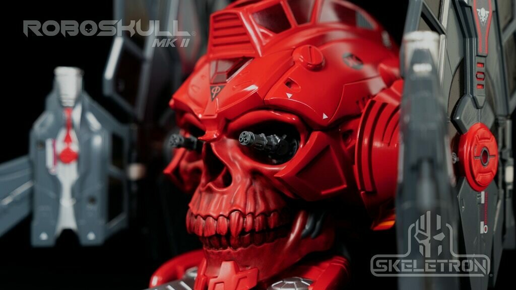 (1) Boxed ROBOSKULL MKII with 4” BLOOD WOLF Pilot, which currently includes: - Breath of Death Energy Effect (Stretch Goal 1) - Red Shadows Gear Upgrade for BLOOD WOLF (Stretch Goal 2) - Assassin SkeleDrones x3 (THREE) (Stretch Goal 3) - Proton Cannon Blast Effects x4 (FOUR) (Stretch Goal 4) - ROBOGLOW Eyes & Glow-in-the-dark Decals (Stretch Goal 8)